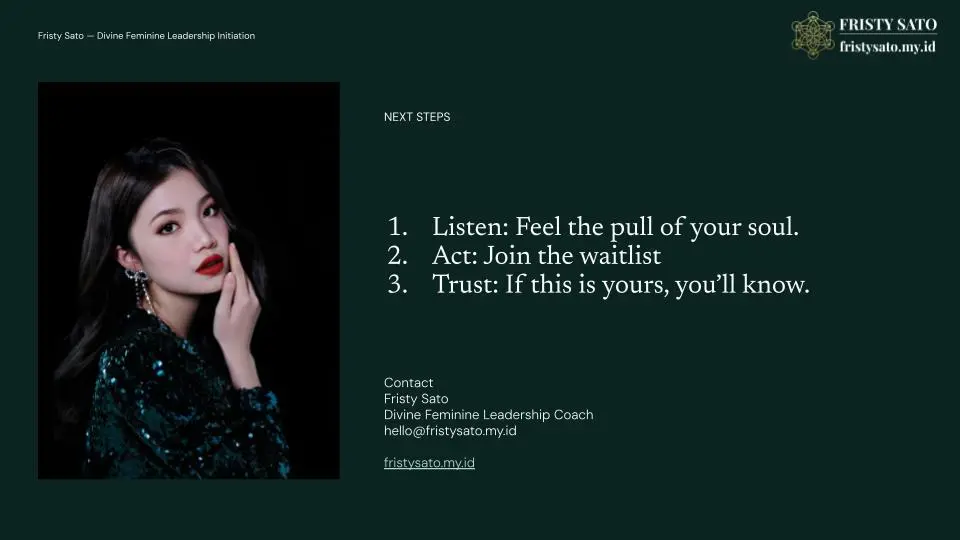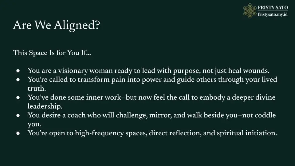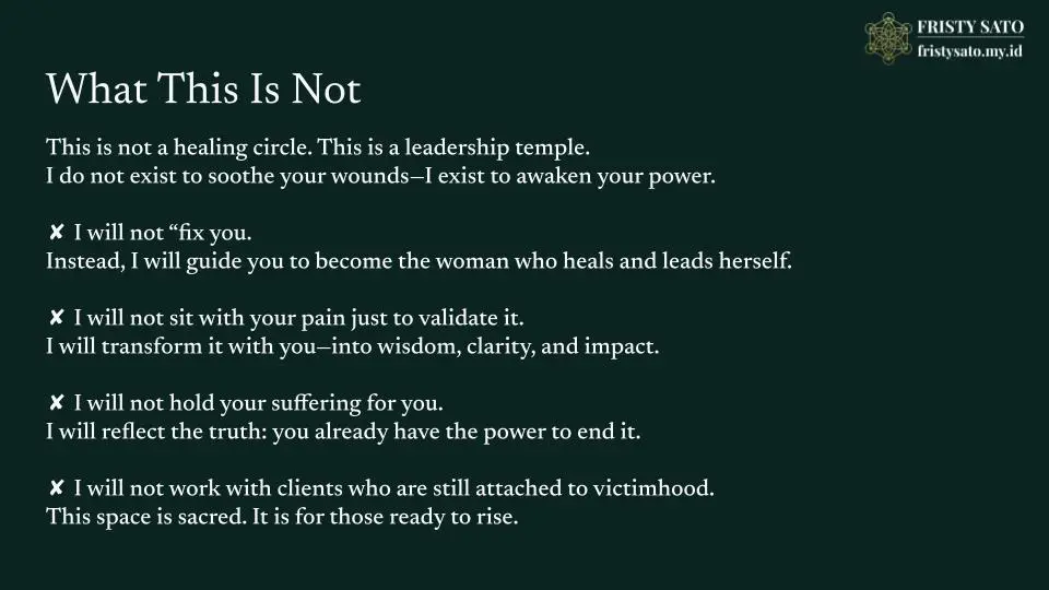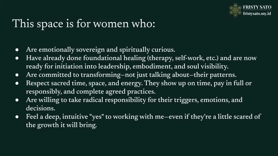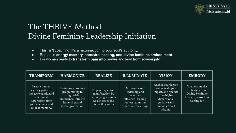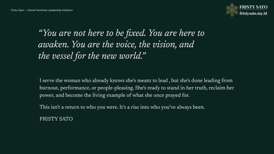 High Touch Premium Mentorship for Feminine Leaders Ready to Rise by Fristy Sato